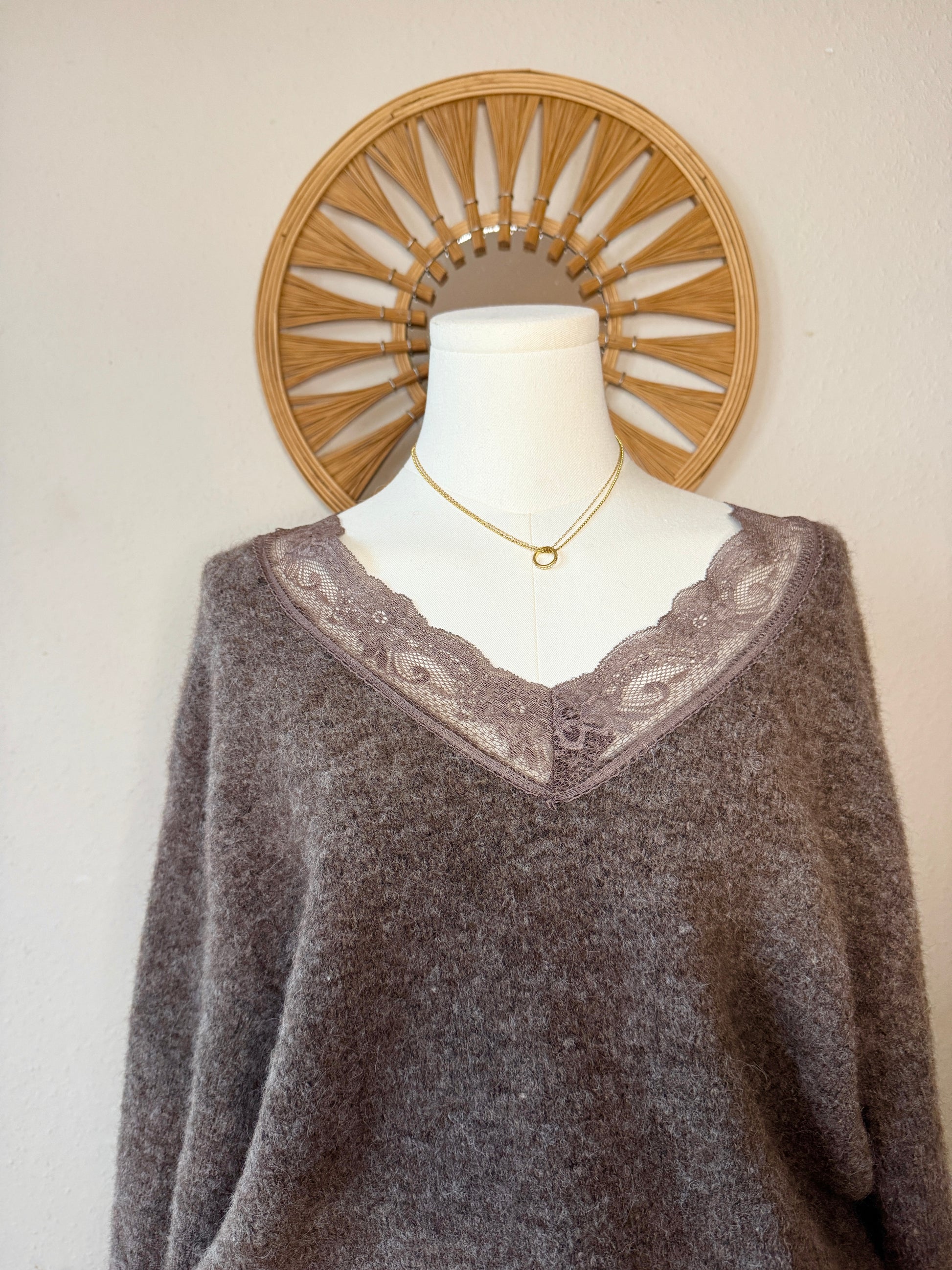 Edle Spitzen-Details am Ausschnitt: Der feine Spitzenbesatz am Hals setzt einen dezenten, aber edlen Akzent und macht den Pullover zu einem echten Hingucker. Ob lässig kombiniert zu Jeans oder schick zu einer Stoffhose – dieses Modell passt sich deinem Stil mühelos an.