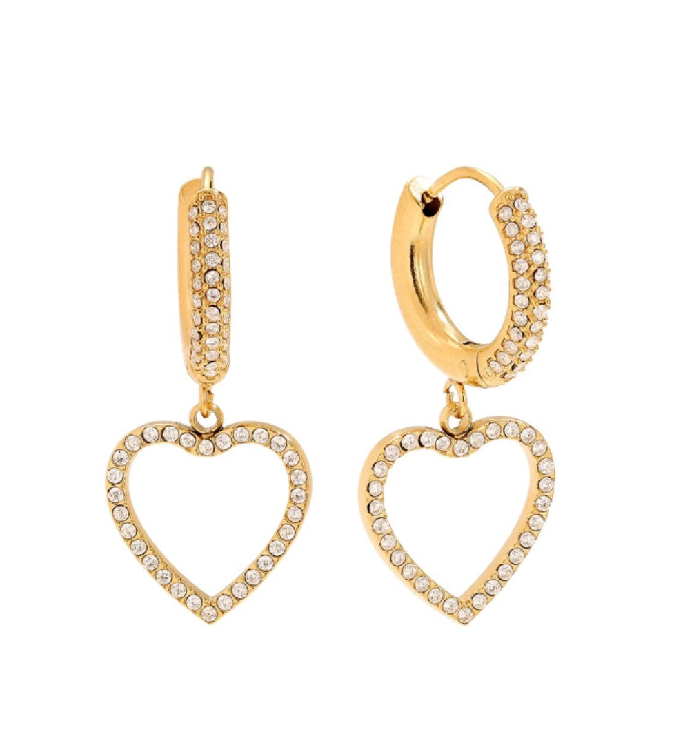 Verleihe deinem Look das gewisse Funkeln: Diese eleganten Creolen mit zartem Herzanhänger und funkelnden Glitzersteinen sind ein echter Hingucker. Leicht, feminin und perfekt für jeden Anlass – ob Alltag oder Date-Night.